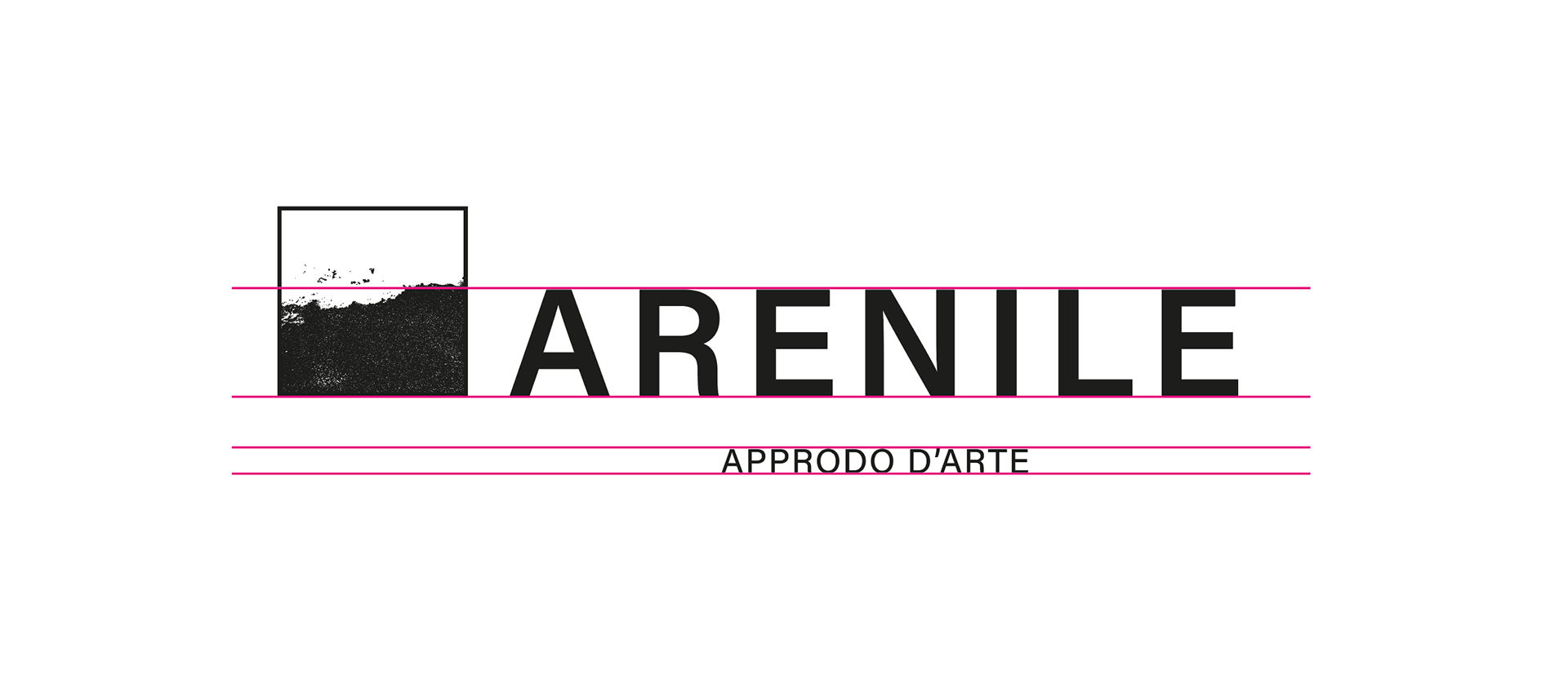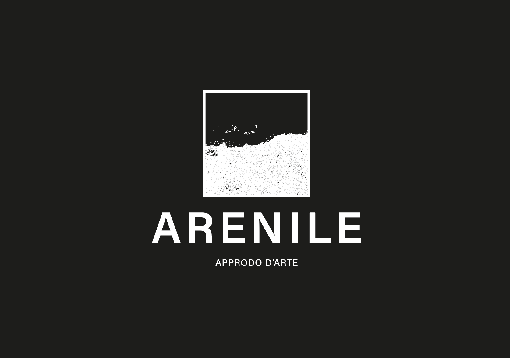 Lo studio del logo per Arenile parte dal concetto di "approdo" : un riquadro essenziale racchiude una texture materica che richiama la sabbia e la linea della costa, metafora del punto d'incontro in cui le idee sedimentano e prendono forma. Il contrasto netto tra bianco e nero enfatizza l’identità visiva dell’associazione, dedicata alla promozione artistica e alla valorizzazione dei linguaggi contemporanei. Il naming “ARENILE” è presentato con un carattere tipografico solido e moderno, mentre il payoff “Approdo d’Arte” completa la composizione, sottolineando la missione dell’associazione come spazio di incontro, crescita e diffusione culturale.