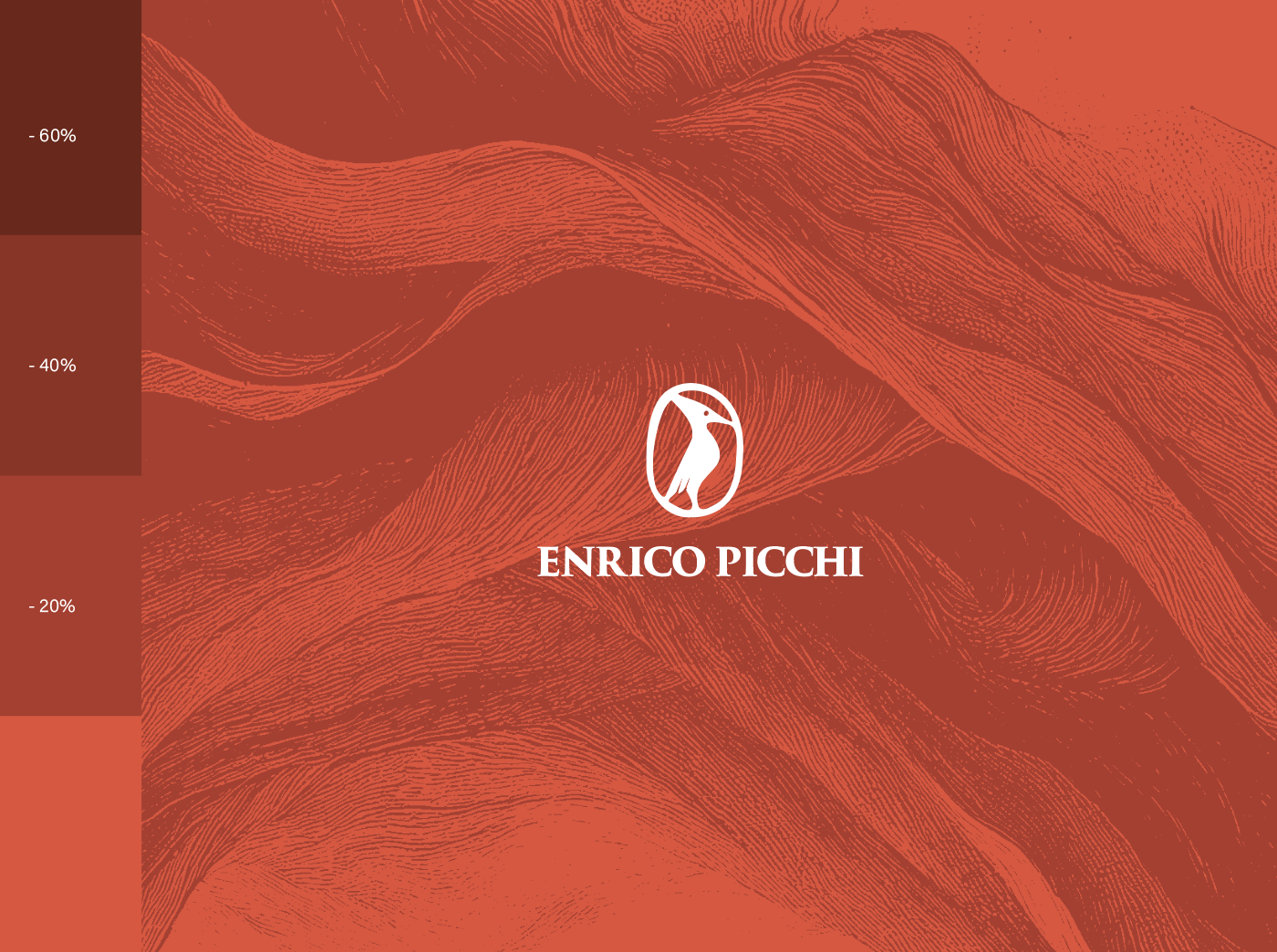 Brand image progettata per lo scrittore Enrico Picchi. Il logo, semplice ed essenziale, presenta il pittogramma del “picchio”, simbolo storico della sua famiglia e origine del cognome "Picchi". Questo elemento visivo è accompagnato dalla tipografia in Trajan, un carattere che evoca classicità ed eleganza. L’immagine coordinata che ne consegue, garantisce una comunicazione visiva omogenea e funzionale sia per la comunicazione a mezzo stampa che nell’ambiente digitale.