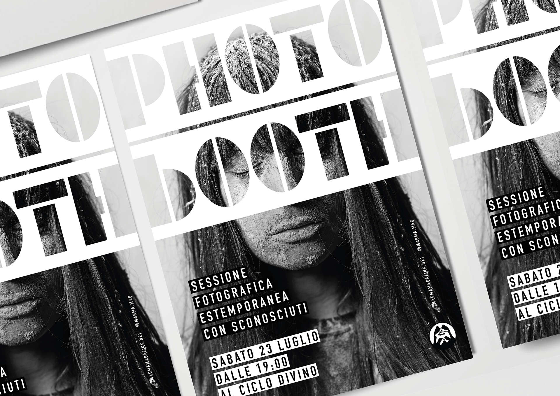Studio del logo per “Photobooth”, una serie di eventi fotografici dedicati a sessioni di ritratto ai clienti di vari locali. Il logo si ispira allo stile iconico delle famose cabine automatiche per la stampa di fototessere e la scelta tipografica dal gusto retrò riflette lo spirito giocoso dell’esperienza “Photobooth”, oltre a restituire un deciso richiamo visivo alla pellicola fotografica.